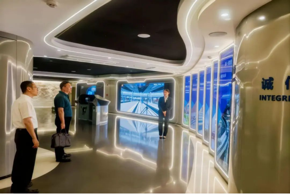 曹廷伟总经理的陪同下,于忠武院长一行参观了中国土木工程集团有限公司数字展厅,深入了解了企业发展历程、历史沿革及全球业务布局,并重点参观了荣誉墙、坦赞铁路精神文化墙等展现企业精神的核心展区。于院长对中国土木在海外工程领域取得的卓越成就、标志性的国际合作项目以及所彰显的“顽强奋斗、无私奉献”的坦赞铁路精神表示高度认同与敬意。