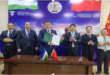 2022年7月29日,在中乌建交30周年这一重要历史节点,天津海运职业学院与乌兹别克斯坦塔什干国立交通大学,在“云”端签署乌兹别克斯坦鲁班工坊建设合作谅解备忘录。这标志着乌兹别克斯坦鲁班工坊正式启动建设。塔什干国立交通大学校长O.K.阿布杜拉赫曼诺夫、副校长图拉耶夫•巴霍吉尔,乌兹别克斯坦中国企业商会执行会长刘羽,天津海运职业学院党委书记张建成、院长吴宗保及学院领导班子成员、各部门负责人,乌兹别克斯坦中国企业商会会员企业代表参加签约仪式。签约仪式由塔什干国立交通大学副校长图拉耶夫•巴霍吉尔主持。