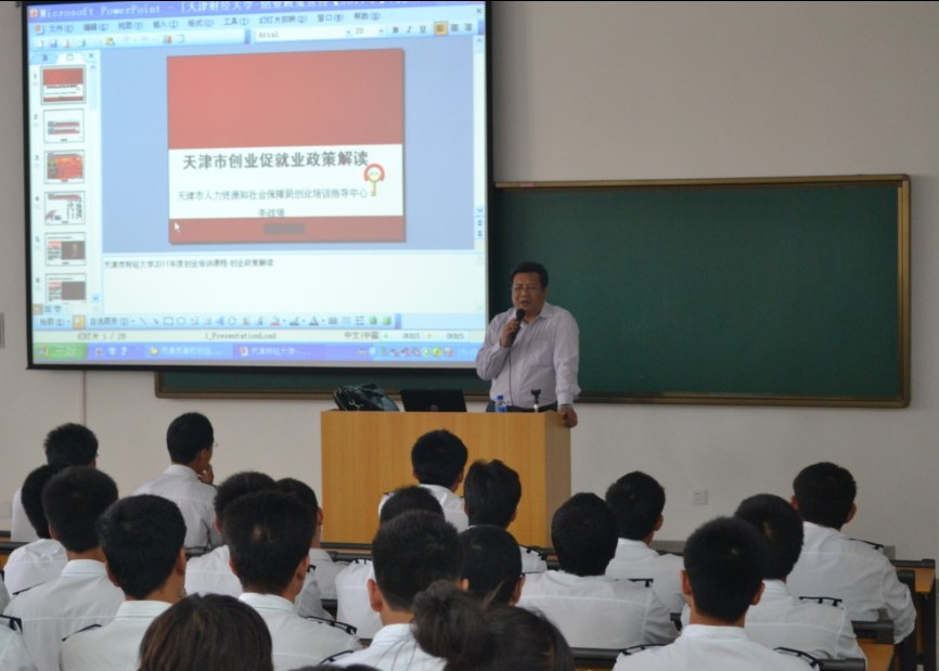 为加强我院学生创业教育,培养学生创业意识和创业能力,学院招生办公室(就业指导办公室)、团委于5月24日邀请天津市人力资源和社会保障局创业培训指导中心李战强副主任就“大学生自主创业政策”进行了专题讲座。此次活动不仅令学生更好地了解了国家创业政策,也是我院下一步组织创业社团活动,邀请市创业指导中心来我院开展创业培训并建立创业基地或创业园等一系列创业活动的良好开端。