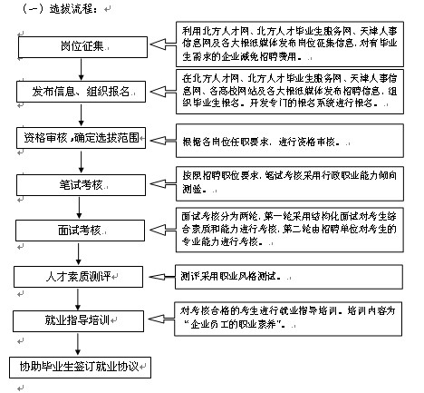 选拔流程全程参照机关事业单位招考流程,包括网上报名、笔试、结构化面试、人才素质测评,锻炼毕业生的临场应试能力,为实现优质就业打好基础。