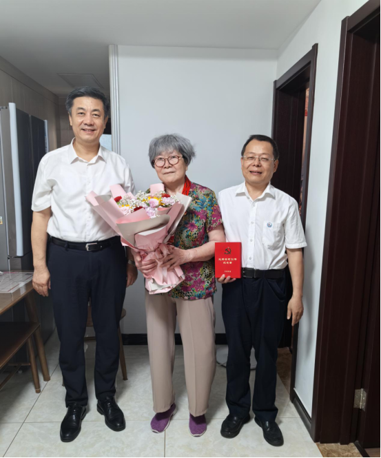6月30日,在中国共产党成立104周年之际,学院党委为退休老党员迟季云同志颁发了“光荣在党50年”纪念章,并对退休党支部老同志进行了慰问。