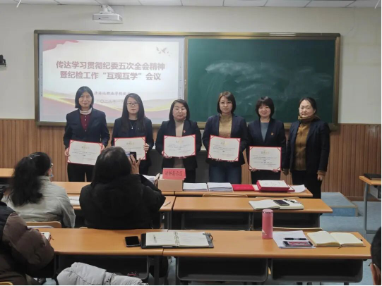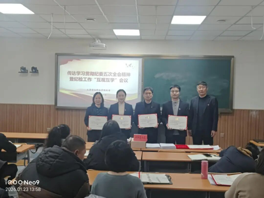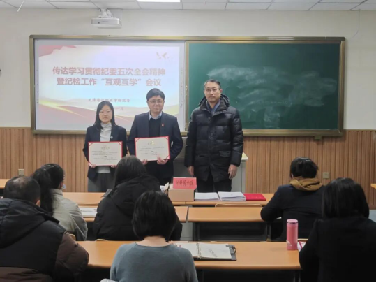 为深入学习贯彻二十届中央纪委五次全会及市纪委五次全会精神,推动学院纪检工作规范化、法治化、正规化水平持续提升,搭建纪检工作交流平台,提升纪检干部履职能力,推动学院全面从严治党向纵深发展,1月23日,学院纪委组织召开传达学习贯彻纪委五次全会精神暨纪检工作“互观互学”会议。学院纪委书记杨静、纪委委员、各基层党组织纪检干部及纪委办公室全体人员参加会议。