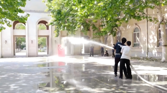 赛前,师生们顶着酷暑投入高强度训练。烈日下,他们反复练习战斗服快速着装、负重奔跑、水带铺设等技能,汗水浸透衣衫却无人退缩。通过一次次磨合与优化战术,团队协作和操作规范性显著提升,为竞赛打下坚实基础。