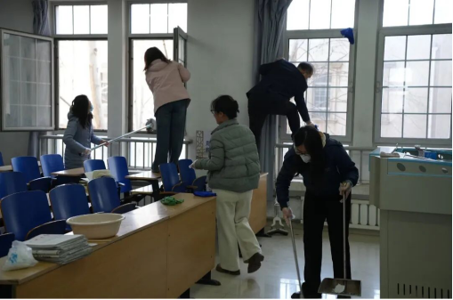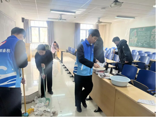 下午1时30分,学院领导班子成员以普通党员身份参与支部活动,与各支部党员、教职工及学生志愿者一道,按照责任分工,深入教学楼内教室、实训室等重点区域,开展全覆盖、无死角的环境卫生集中清整。活动现场,师生们分工协作、配合默契,扫地除尘、擦拭门窗、整理教具、清理杂物,学院领导与师生们亲切交流劳动感受,现场热火朝天、井然有序。