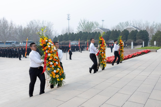 在深情的《献花曲》中,六名国旗护卫队队员代表迈着铿锵有力的正步,护送花篮缓步走向纪念碑基座,花篮缎带上“革命烈士永垂不朽”的金色大字在阳光下熠熠生辉,象征着红色基因的赓续传承。随后,全体队员依次瞻仰烈士纪念碑并敬献鲜花,一朵朵洁白的菊花,寄托着对英烈的无限哀思与崇高敬意。