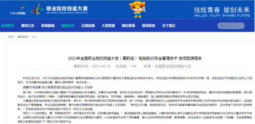 8月12日,全国职业院校技能大赛官网(https://www.vcsc.org.cn)发布2023年首届船舶航行安全管理技术赛项信息。