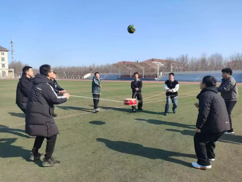 活动设置“同心鼓”“不倒森林”“能量传输”三项团队竞赛项目,巧妙地将航海专业技能的锤炼与心理素质的培养融为一体,旨在打造一支支兼具实力与韧性的航海精英团队。在“同心鼓”环节中,学生通过协同控制鼓面节奏,强化集体协作能力。“不倒森林”项目模拟突发状况下的团队配合,考验成员反应与默契,团队成员迅速调整步伐,紧密配合。而“能量传输”环节以接力传递的形式,强化责任意识。三支队伍在竞赛中展现出的高效沟通与策略执行能力,充分体现了航海专业所需的团队精神。