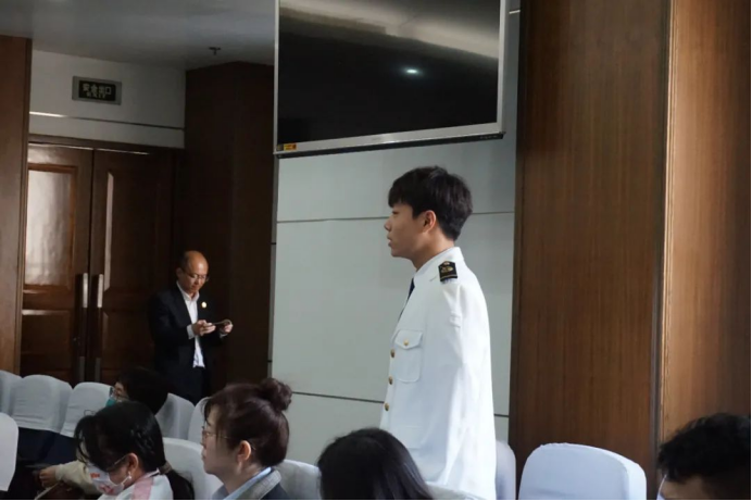 上午8:50,社团成员身着统一制服,与行业协会专家、企业代表共同进入天津海事法院(滨海新区第二大街75号)第六审判庭。庭审过程中,成员们认真记录案件争议焦点、举证质证流程及法律适用要点,并围绕“运费拖欠争议点”“企业如果有效规避运费拖欠风险”等专业问题展开实时讨论。休庭期间,海事法院法官结合案件特点,为社团成员解析《中华人民共和国海商法》第87条关于运费请求权的规定,以及《中华人民共和国民事诉讼法》中证据链构建的关键要素,现场互动气氛热烈。
