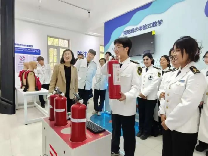 在消防演练区,系统模拟设置了电器短路、宿舍起火等突发场景,老师现场演示灭火器类型选择和使用技巧,学生代表实操体验,掌握“提、拔、握、压”四步法要领,迅速完成灭火任务。