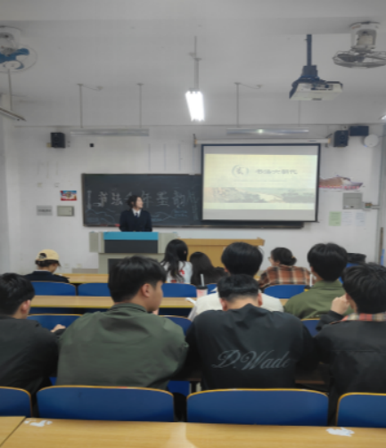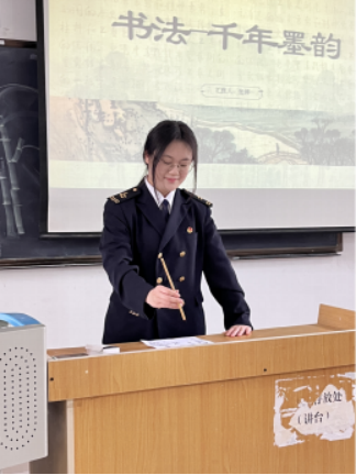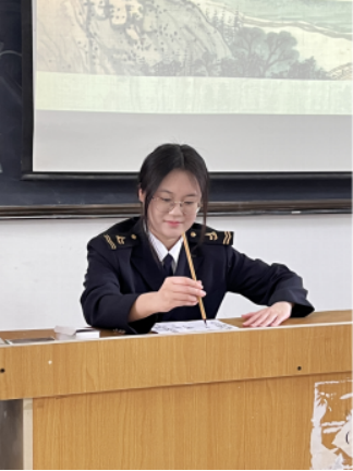 活动伊始,海运文学社干部张婷同学以“研究背景”为切入点,娓娓讲述书法的起源。原始社会陶器、龟甲之上的远古符号,诸如半坡彩陶符号,作为汉字与书法的萌芽,拉开了此次书法文化探寻之旅的序幕。而甲骨文,作为中国书法体系中最早的文字形态,更是让社员们切实感受到书法艺术深厚的历史积淀。