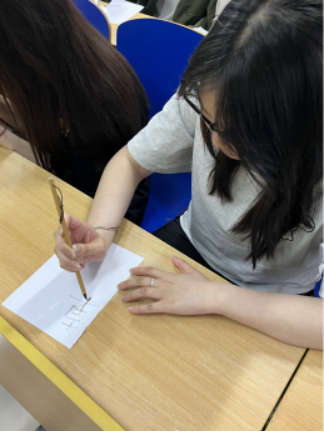 接下来,活动聚焦于“如何书写一手好书法”。详细阐释了毛笔、墨汁、宣纸、砚台等书法工具的挑选要点,规范讲解了坐姿、站姿等正确书写姿势,以及握笔法的关键诀窍,通过理论与实践相结合的方式,为社员们提供了系统且实用的书法学习指导。接着,在书法活动成果展示环节,成员们专注伏案书写。展示时,作品亮点频出。