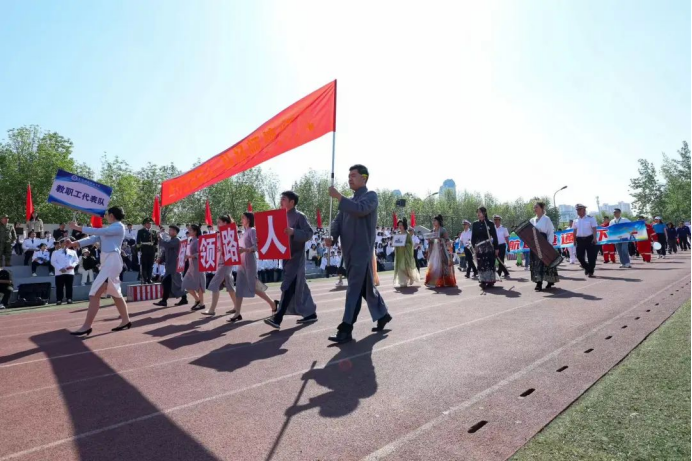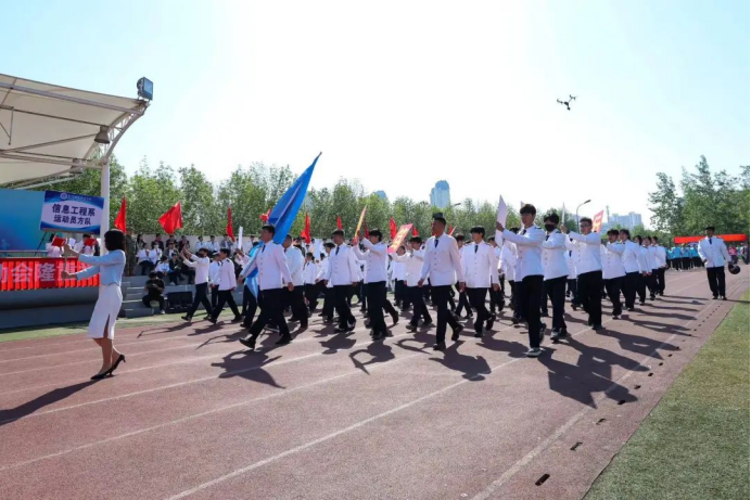 在雄壮嘹亮的乐曲声中,国旗护卫队、院旗院徽方队、旗海方队、各系代表队、留学生方队、分工会教职工代表及裁判员方队依次通过主席台接受检阅,展现出顽强拼搏、奋勇争先的精神风貌,赢得了在场师生的阵阵喝彩。