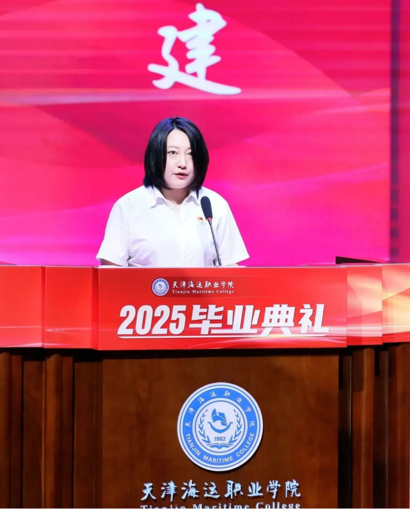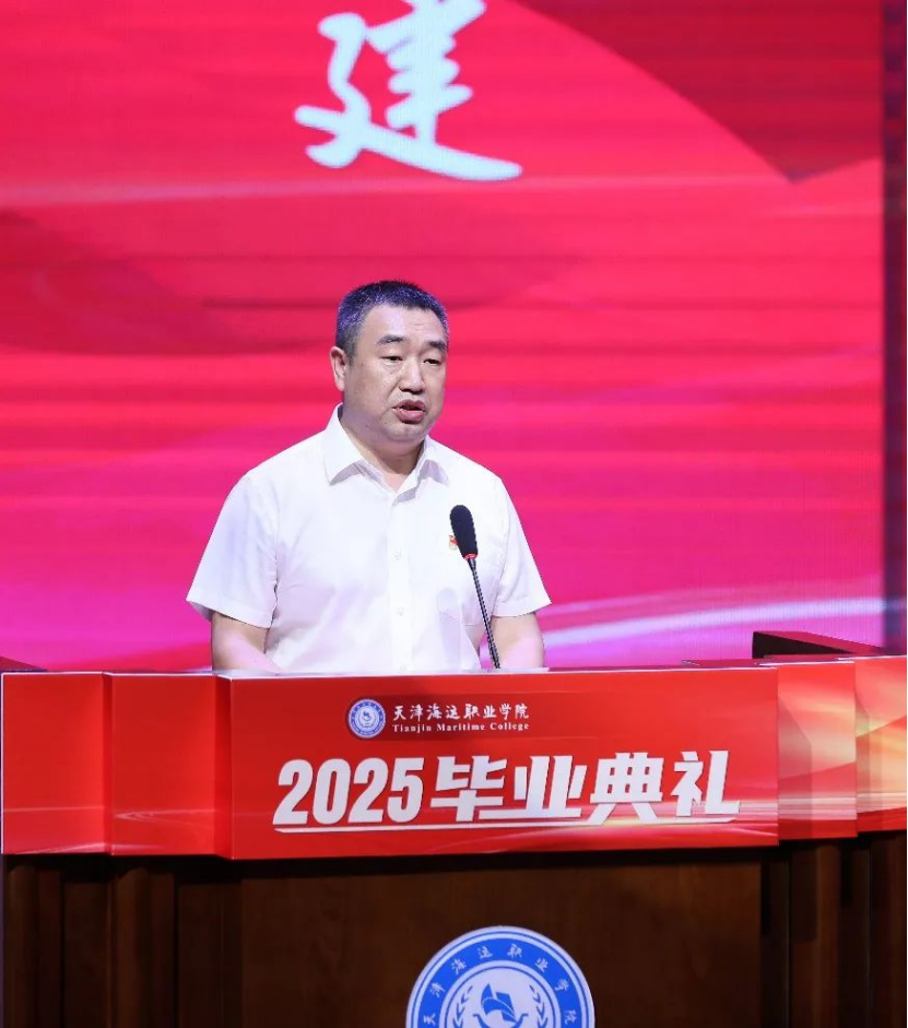 盛夏如约,骊歌声起。7月5日,天津海运职业学院2025届学生毕业典礼在水上教学训练中心报告厅举行。学院领导班子成员、各教学系部和职能部门领导、辅导员、家长和校友代表等齐聚一堂,共同见证2025届毕业生圆满完成学业、开启人生崭新篇章。学院副院长王明春主持毕业典礼。